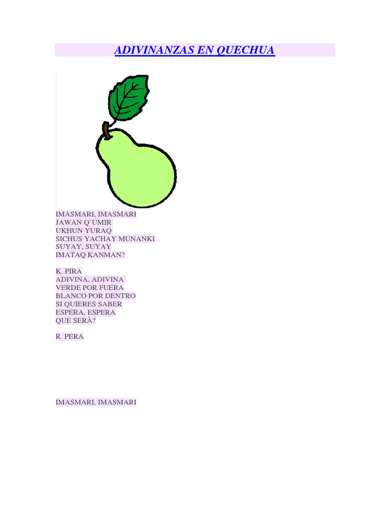 Blogger De Paulinamallqui Adivinanzas En Quechua