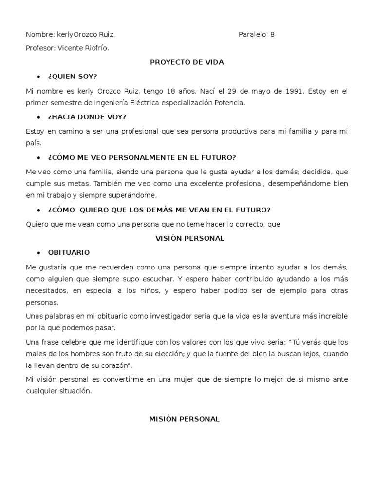 Ejemplo De Proyecto De Vida