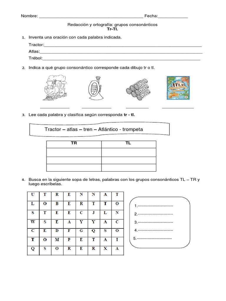 Ficha De La Letra Tr Y Tl Para Primero De Primaria Actividades