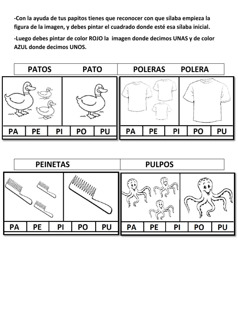 Tarea Prekinder Silaba Inicial Pa Pe Pi Po Pu Y Articulos