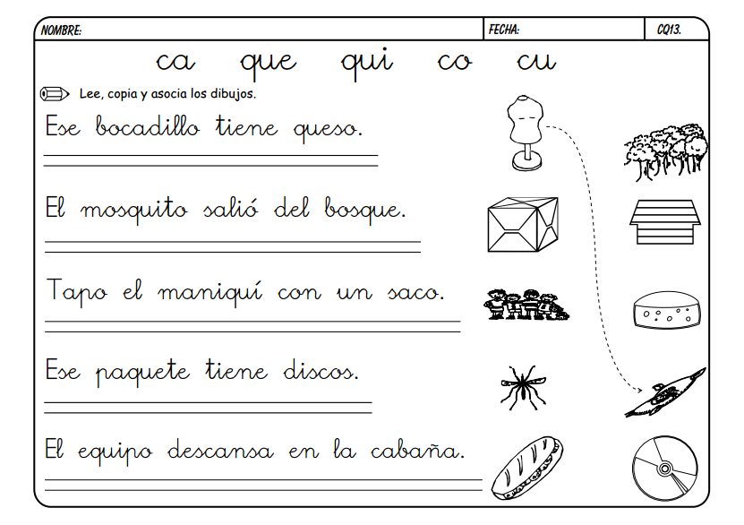 Estudio De Las Silabas Ca Que Qui Co Cu Ficha Nº 21