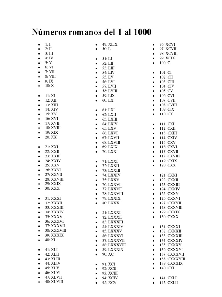 Numeracion Del 1 Al 1000 Numeros Romanos لم يسبق له مثيل الصور