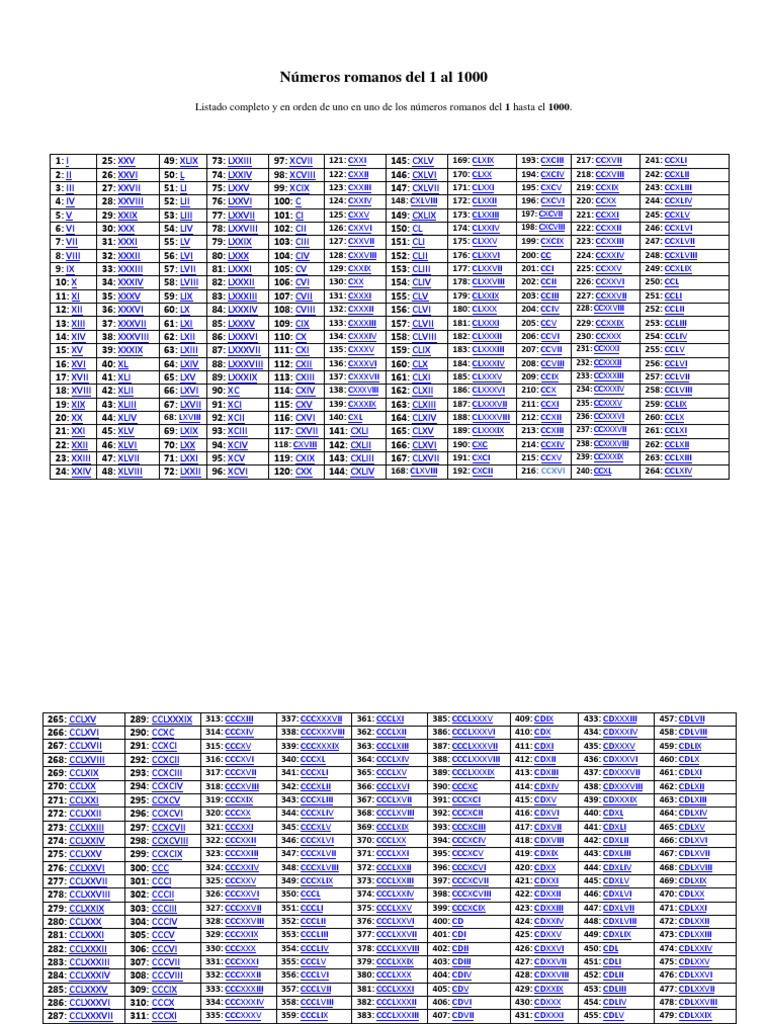 Numeros Romanos Del 1 Al 1000