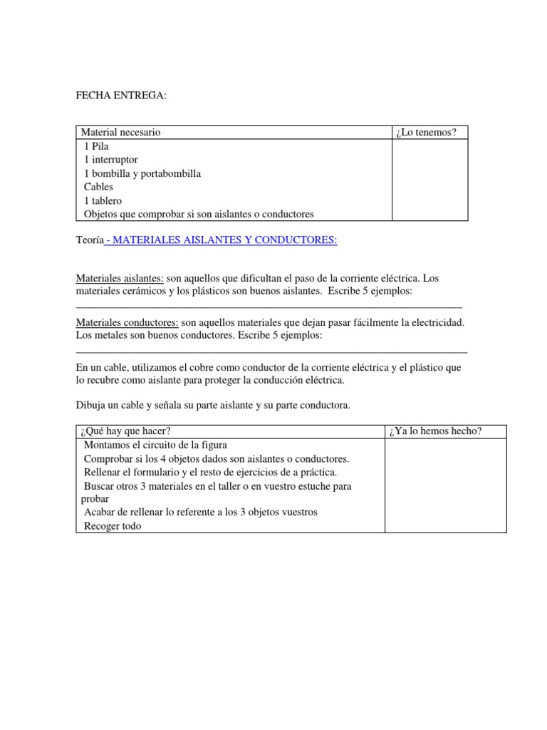 Materiales Conductores Y No Conductores Para Cuarto De Primaria 2020