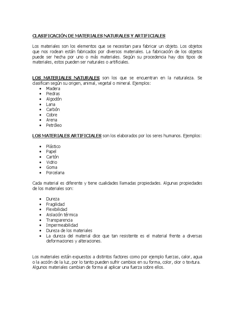 Materiales Naturales Y Artificiales 1