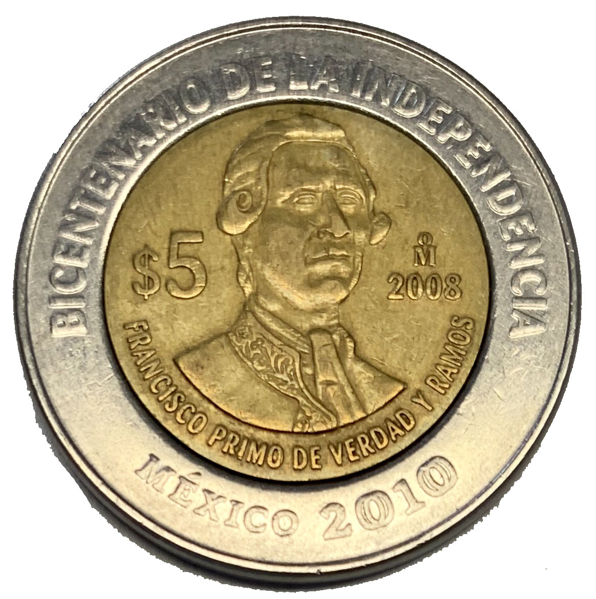 Monedas De Mexico 5 Pesos 2008 Primo De Verdad Con Puntos Y Sin
