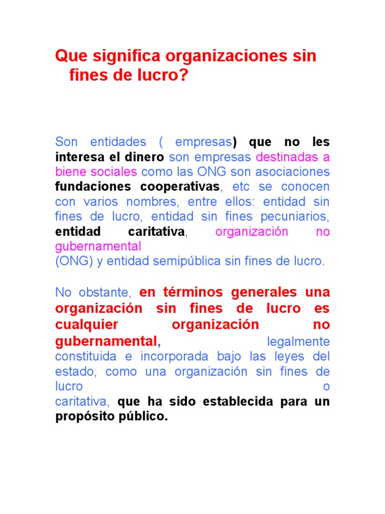 Que Significa Organizaciones Sin Fines De Lucro