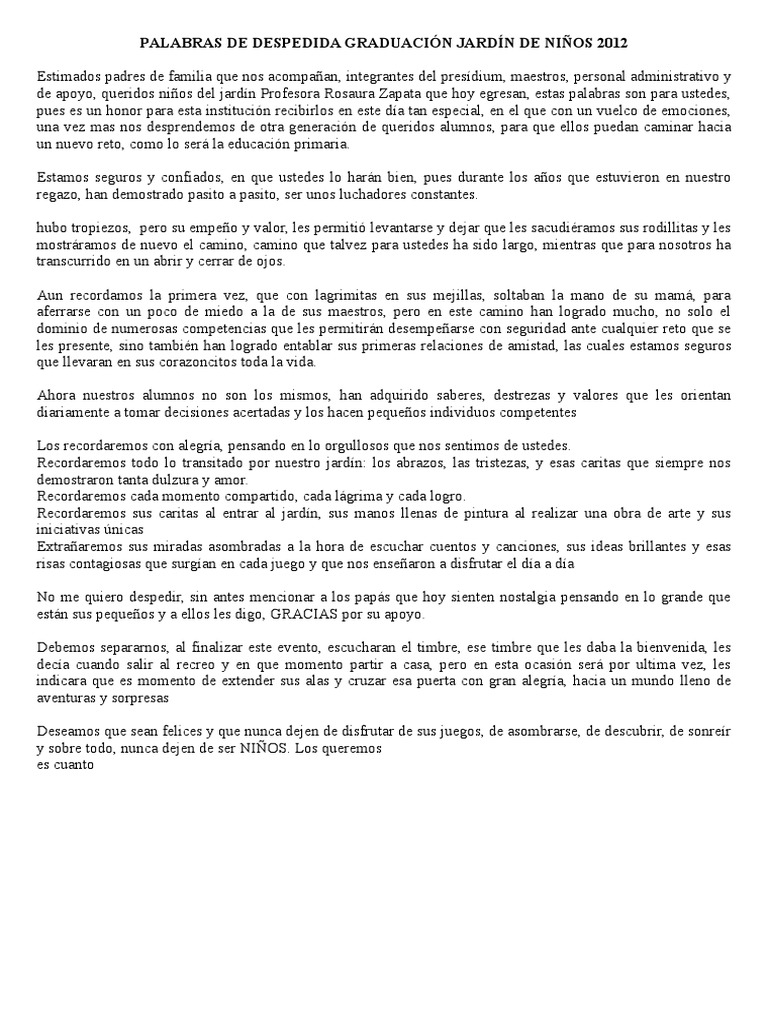 Palabras De Despedida Graduacion Jardin De Ninos 2012 2