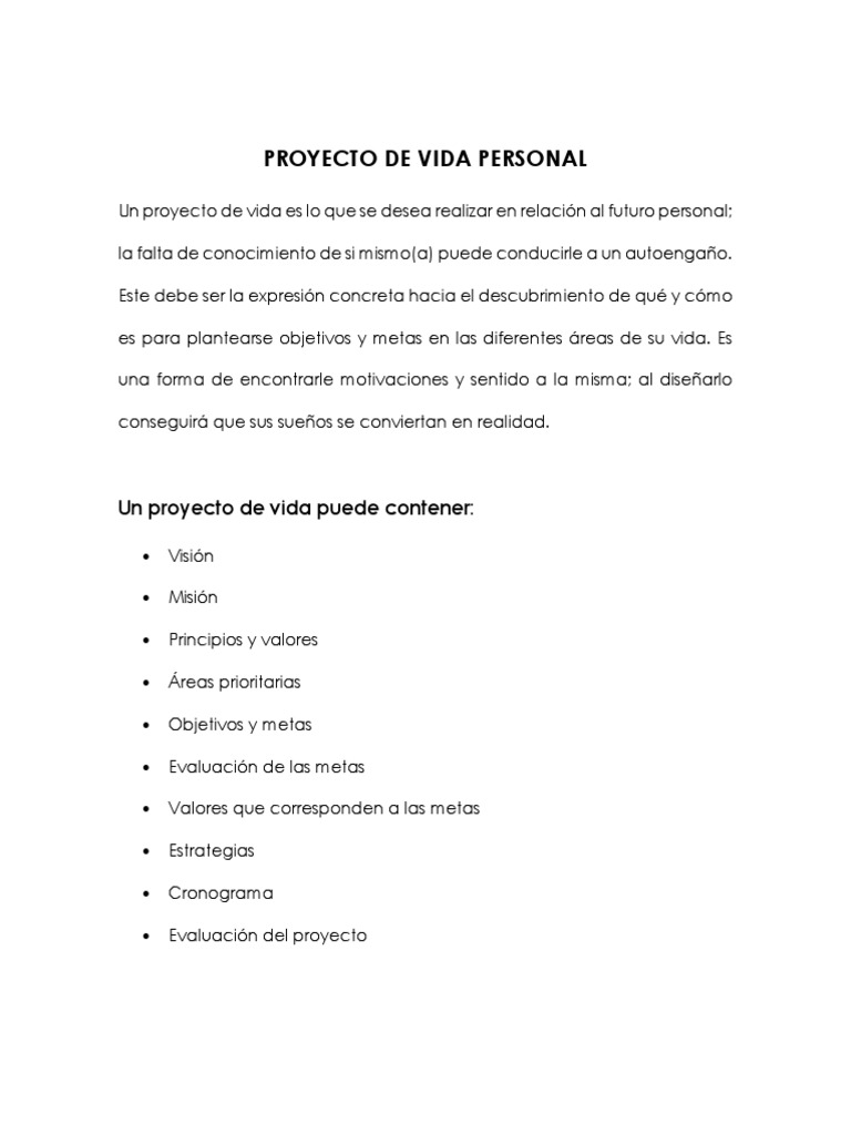 Esquema Para Elaborar Proyecto De Vida Personal