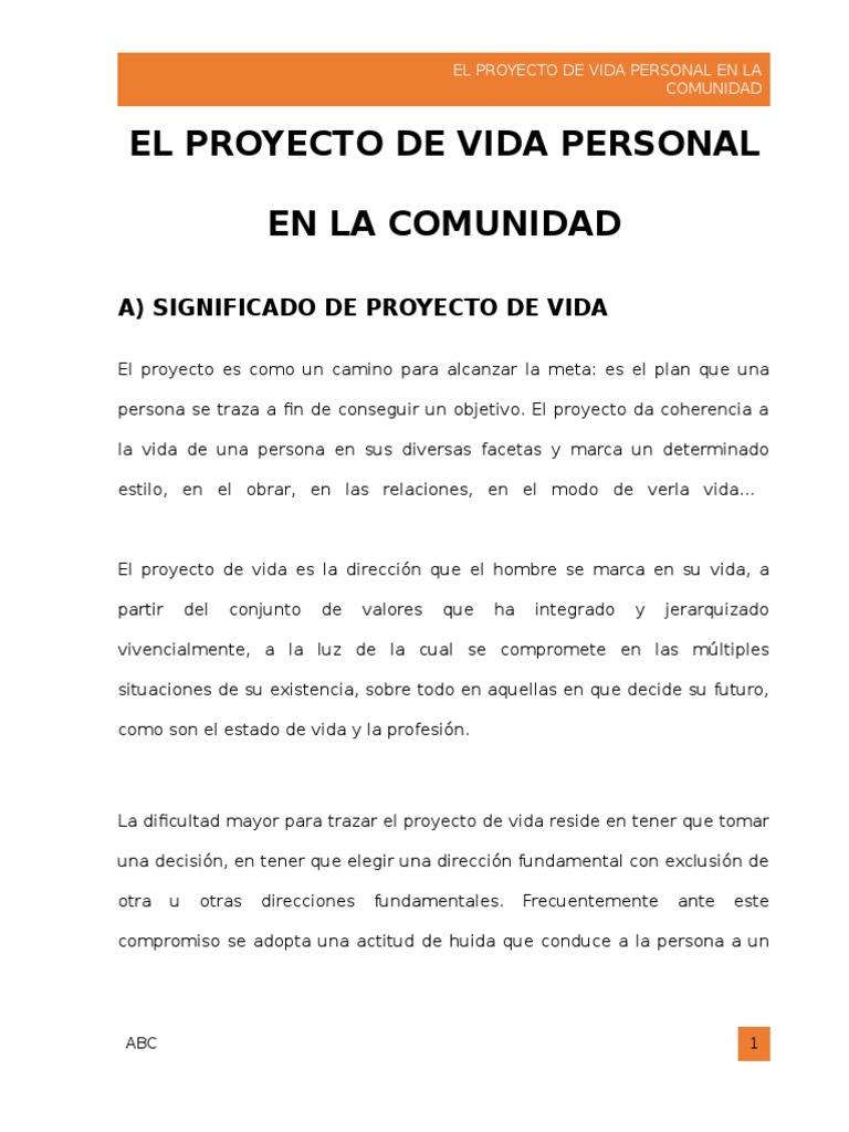 Religion El Proyecto De Vida Personal En La Comunidad Docx