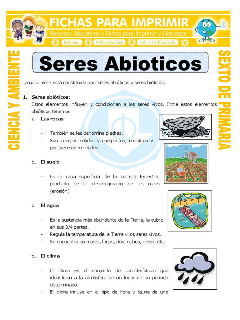 Ficha Seres Abioticos Para Sexto De Primaria Tierra Organismos