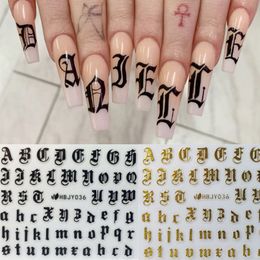 1 Sheet Letter Nail Art Sticker Decals Gold Letters Black Words