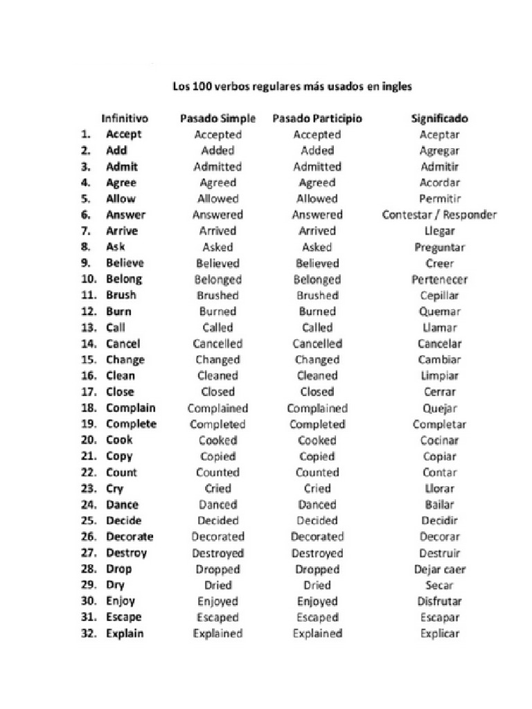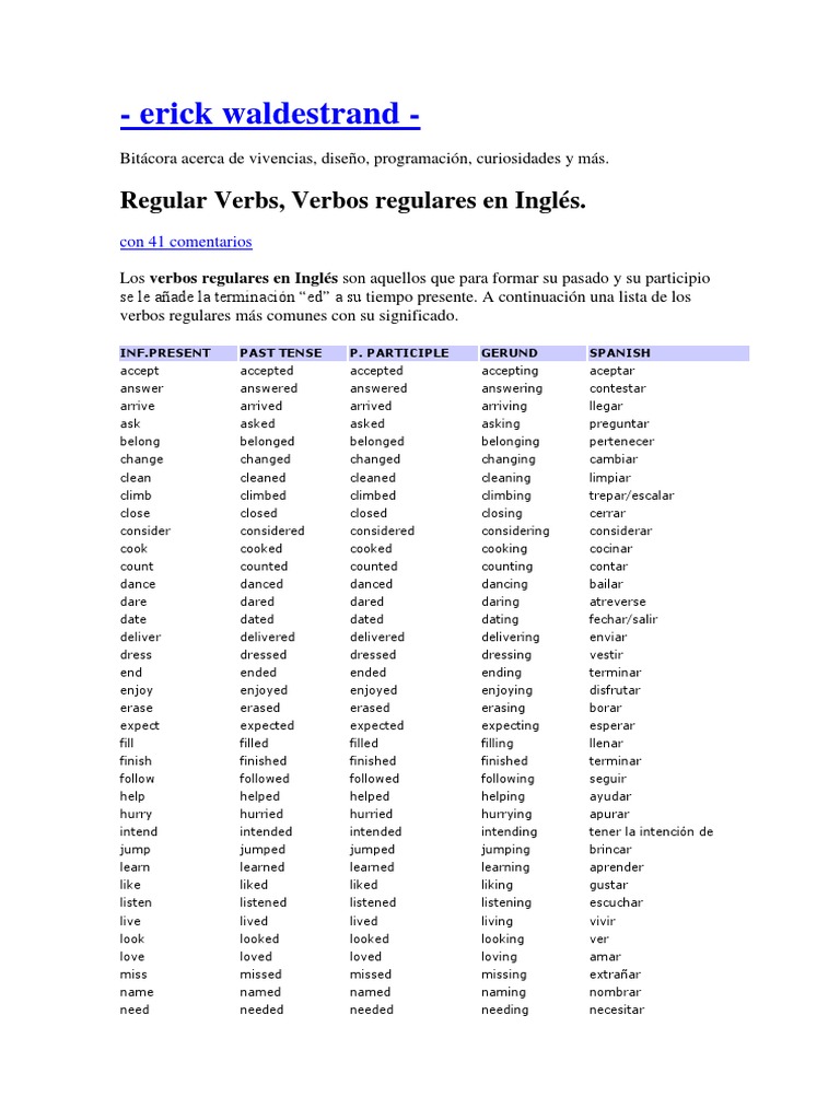 Lista De Verbos Regulares E Irregulares En Ingles Significado