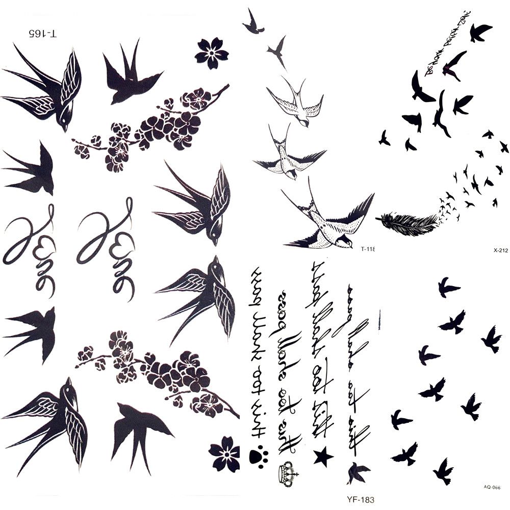 Pegatinas Para Tatuajes Temporales Lindo Golondrina Pluma De