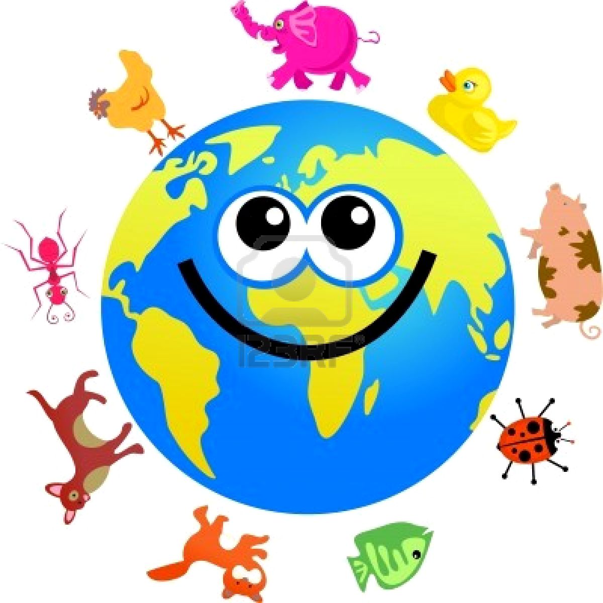 Ilustracion De Un Planeta Tierra Mundo De Dibujos Animados Con Elementos Del Entorno Alrededor De Campos De La Agricultura Arboles Setos Arbustos Pastos Y Hierba Ilustraciones Vectoriales Clip Art Vectorizado Libre De