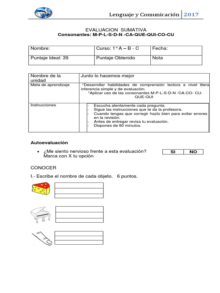 Evaluacion Consonantes M P L S D N Ca Co Cu Que Qui Sicologia Y Ciencia Cognitiva Educacion Avanzada Prueba Gratuita De 30 Dias Scribd