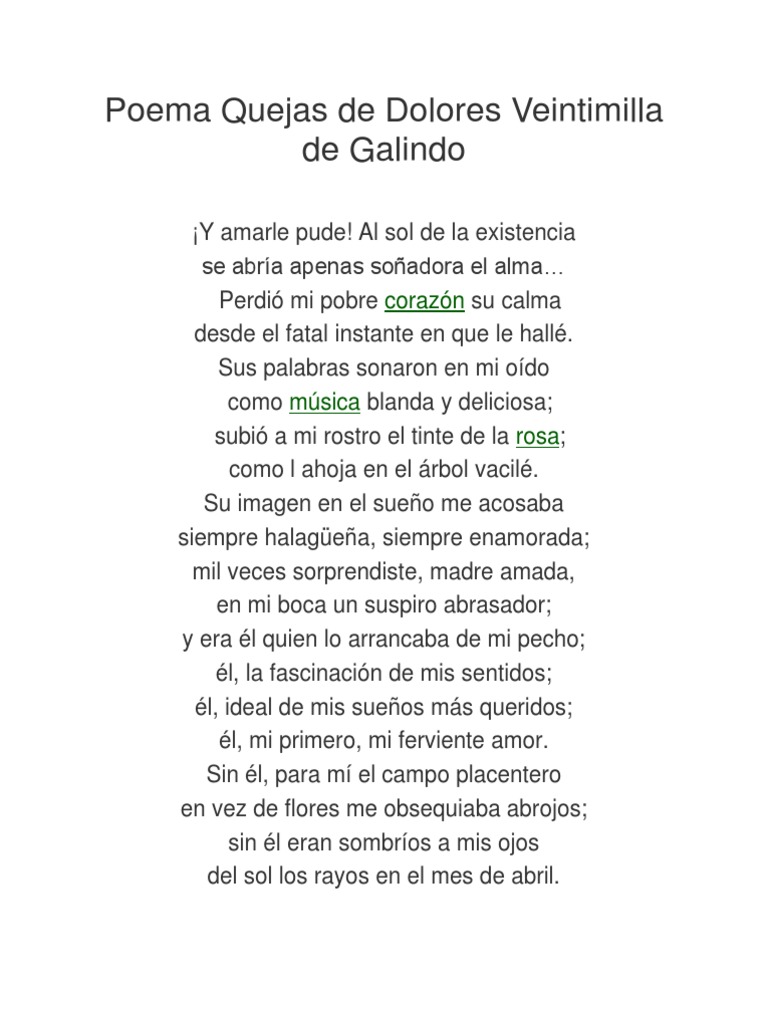 Poema Quejas De Dolores La De Galindo
