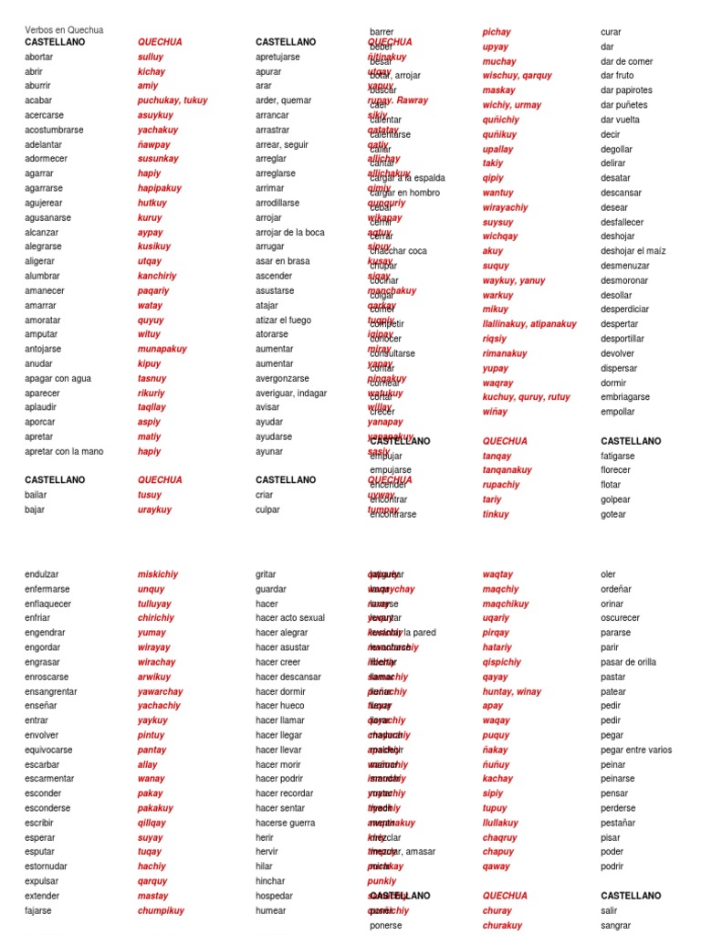 Verbos En Quechua Con Imagenes
