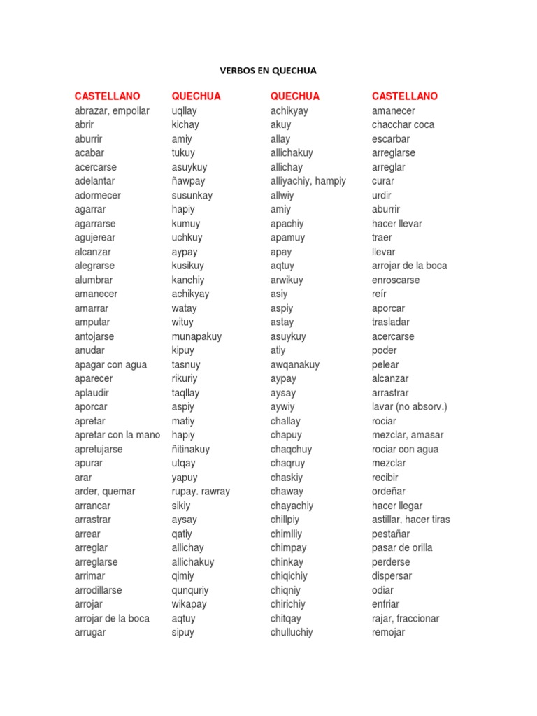 Quechua 100 Verbos En Quechua Like Compartir Quechua Facebook